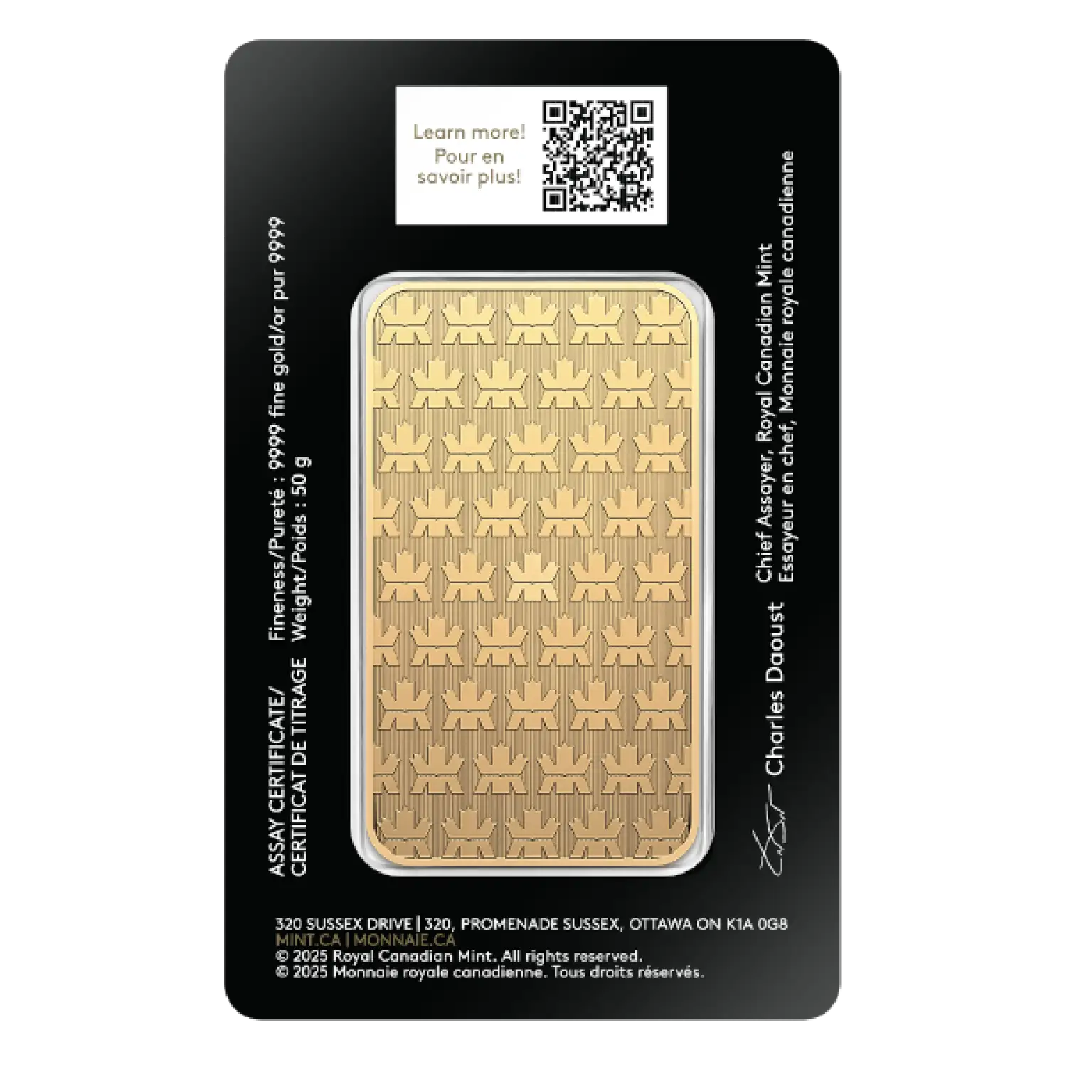 The 50g Royal Canadian Mint (RCM) Gold Bar is a hallmark of quality and prestige in the world of precious metals. Known for its purity and craftsmanship, this gold bar is not just an investment; it's a tangible asset that can serve as a valuable addition to your portfolio. Each bar is meticulously produced by the Royal Canadian Mint, renowned for its strict quality standards and advanced technology in bullion production.
